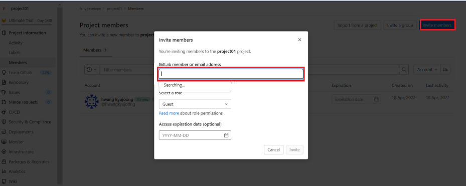 4. Members에서 멤버 추가 (이메일) 또는 권한 부여 가능